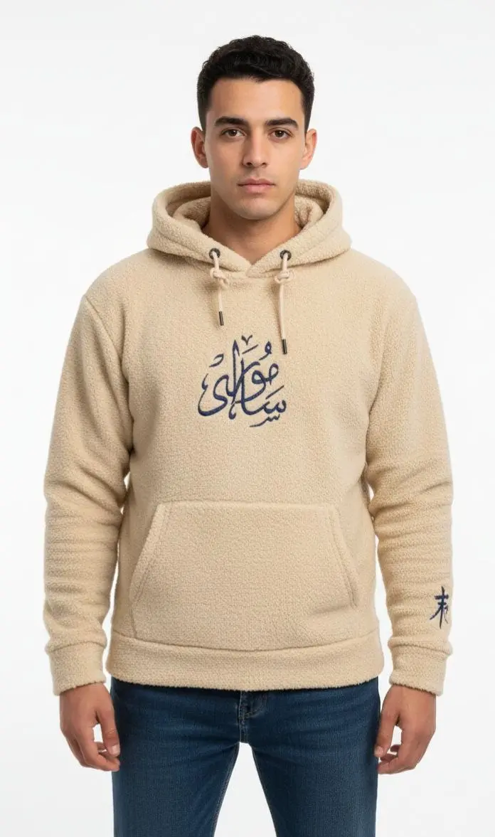 هذا الهودي يتميز بتصميم عصري يجمع بين الراحة (Comfort) والشكل الأنيق، وإليك وصفاً دقيقاً لكل تفاصيله: